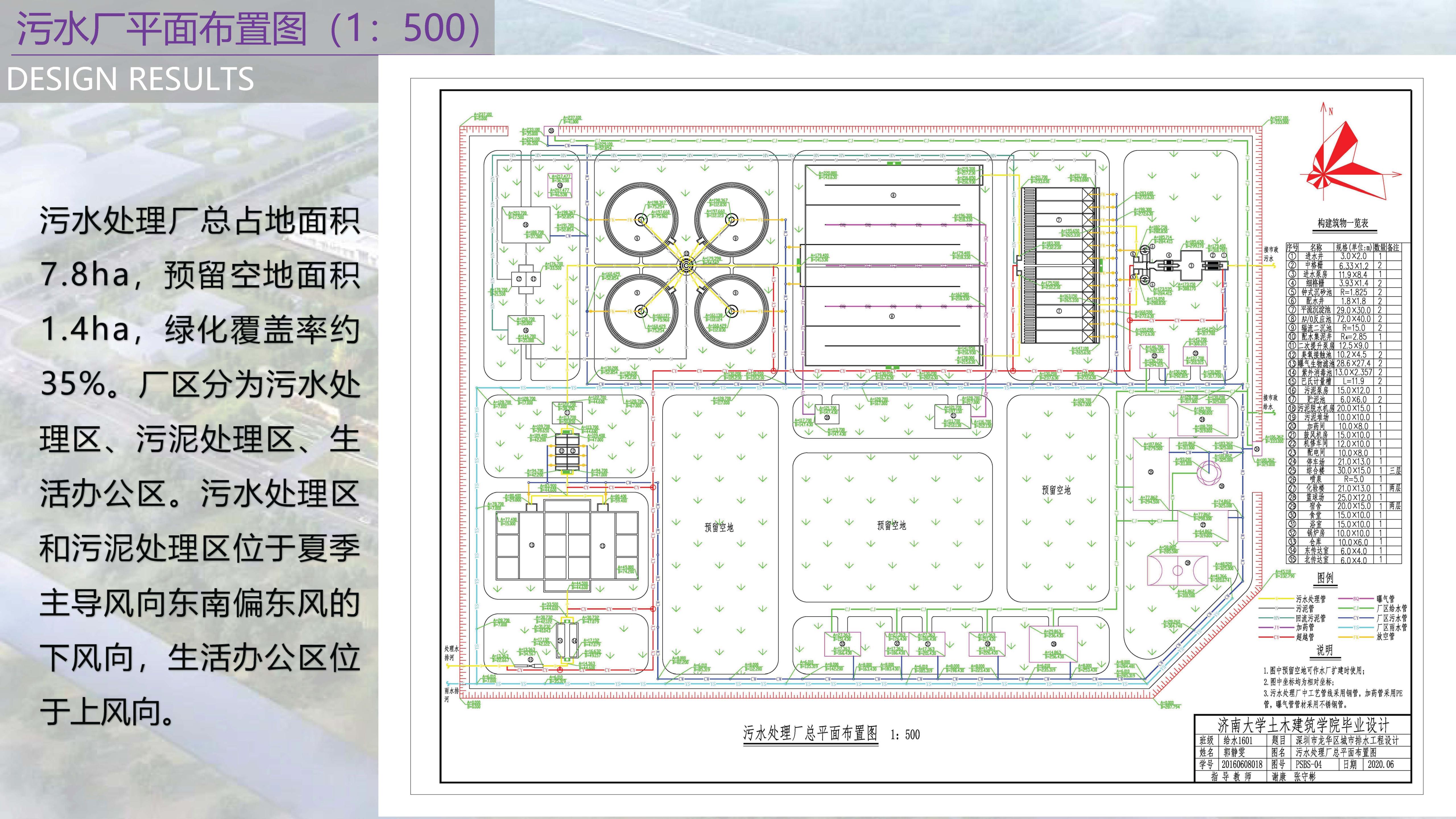 污水厂最大日设计污水量87700m3/d。设计污水进水水质为:SS=266.30mg/L,COD=412.40mg/L,BOD5=243.38mg/L,TN=37.93mg/L,NH3-N=27.48mg/L,TP=4.15mg/L。经处理达到国家污水排放标准一级A标准后排放。